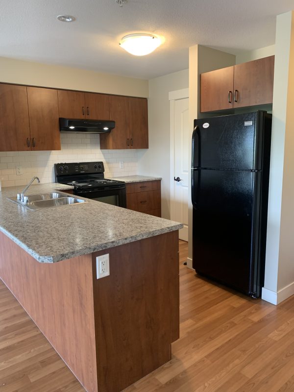 Welcome to Apple Valley. Beautiful 2 bedroom, 1 bath suite in 55 plus independent seniors building. Conveniently located close to shopping, public transportation and mission creek greenway. No pets, no smoking property. Comes with covered deck, fridge, stove, dishwasher and laundry hookups in suite. Secure building with underground parking (extra fee)Rec center and community gardens as well. Utilities not included. Income verification required. (Note: Pictures are from different unit but finishings are the same and layout is similar)
