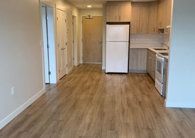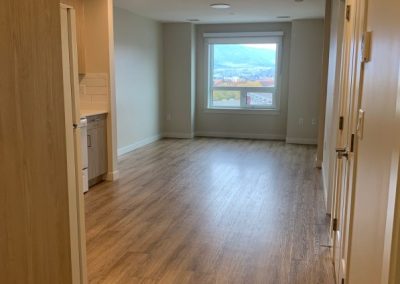Welcome to Capstone. Lovely top floor 1 bedroom, 1 bath suite in new building. Conveniently located close to shopping, public transportation and mission creek greenway. No pets, no smoking property. Comes with covered deck, fridge, stove, and shared laundry. Secure building with underground parking (extra fee). Community Rooms and gardens as well. Utilities not included. Income verification required.