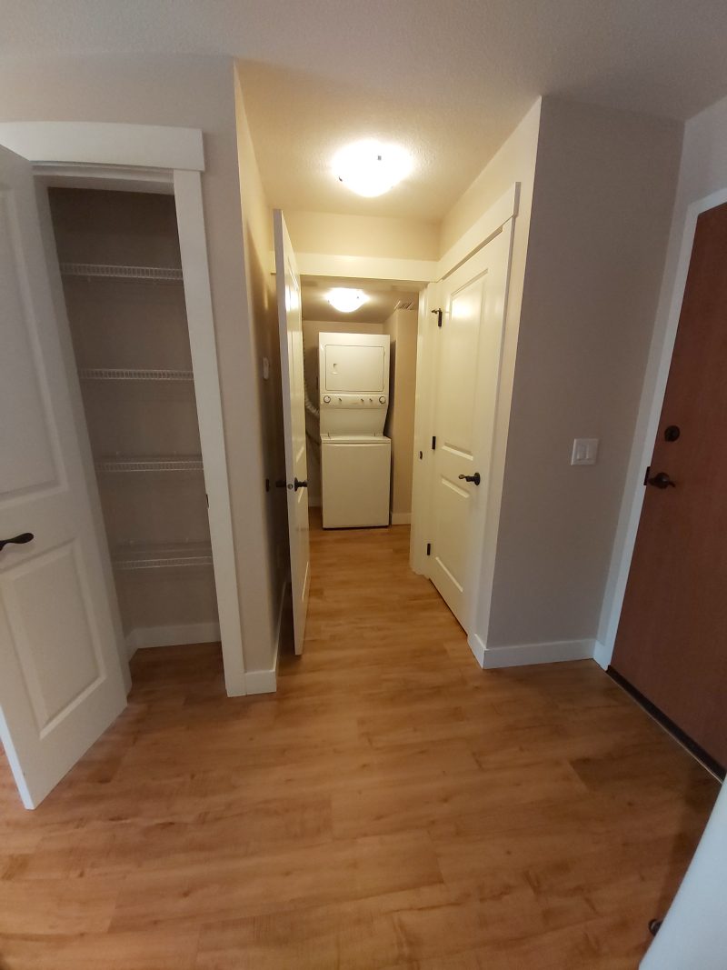 Beautiful 560 sq ft one bedroom, one bath suite on the third floor in 55 plus independent seniors building. Located close to Knox mountain, and the lake. Bus stop right out front. No pets, no smoking building. Comes with fridge, stove, and insuite laundry machines. Unit has covered a patio and community garden boxes are available in the fenced garden area. Utilities are not included. Income verification required.